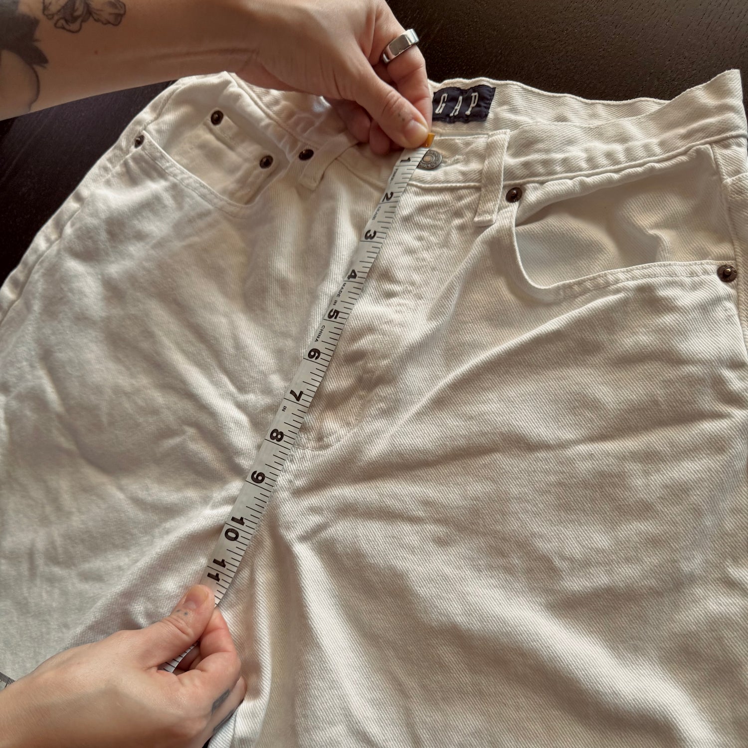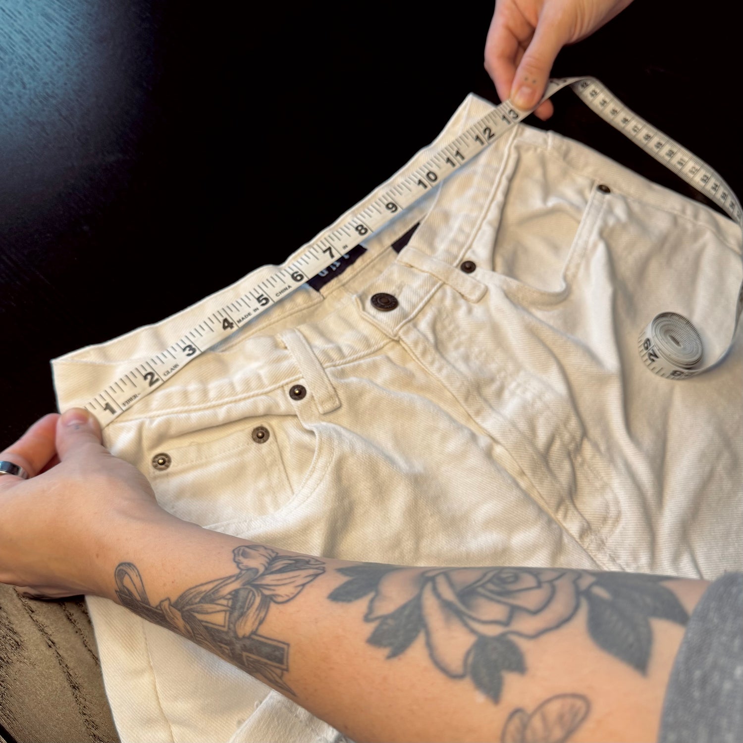 Otherwise known as “waist band” - measurements are taken flat across the top of waist band and doubled (e.g. 13” measured flat will be equivalent to a 26” waist); for stretch/easy pants, measurements will be taken both flat and pulled taut (e.g. 14”-18”)